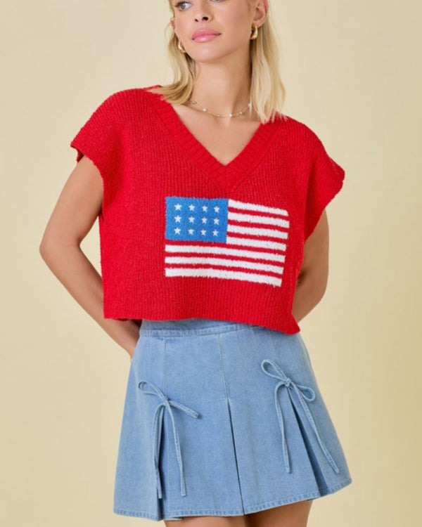 Americana Flag Fuzzy Vest