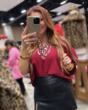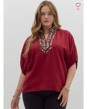 Sweet as Fall Short Sleeve Mock Neck Top in Wine