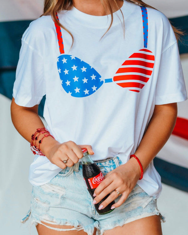 Red White & Blue Swim Suit Top tee